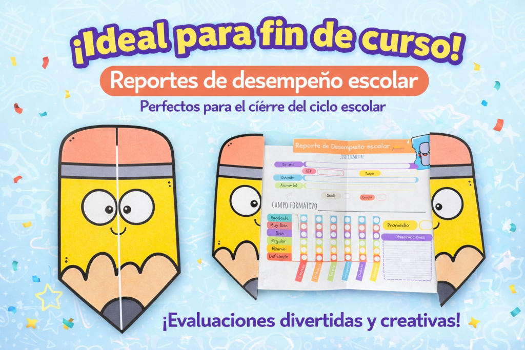 Al finalizar el ciclo escolar, muchos docentes buscamos una forma especial y creativa de entregar las evaluaciones a nuestros alumnos.